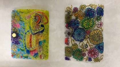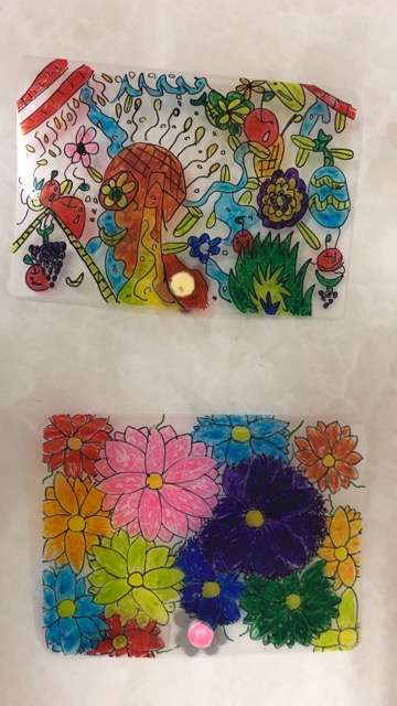 先日、PTAの保護者の方から頂いたマスクケースに絵を描きました!色とりどりのオリジナルマスクケースになりました!