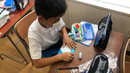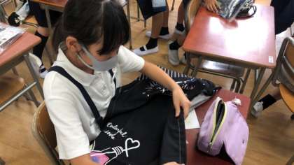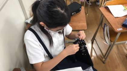今日は、エプロン作りをしました。エプロン作りは、後半戦に入り、完成している児童が多く出てきています。