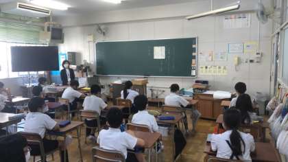 校長先生から「西天満小学校一人一人の大切な命を守り、2学期も楽しく仲良く、そして安全に過ごせるように、手洗いを徹底したり、交通事故にあわないように車に気をつけましょう。また、2学期も素敵な挨拶がいっぱいの素敵な学校にしましょう」とお話がありました。