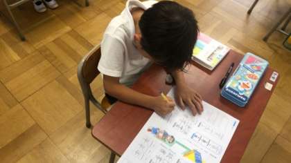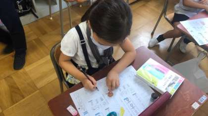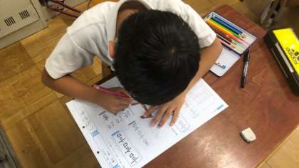 今日は、点や画の長さに気をつけて、「言」という字を書きました。