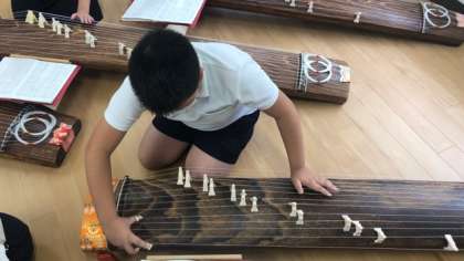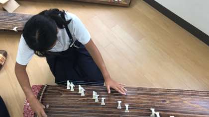 日本の伝統的な楽器「お琴」の練習をしています。今日は、「さくら」の曲を弾きました。学校中にお琴の音色が聞こえると、とても、優雅な気持ちになりますね。