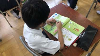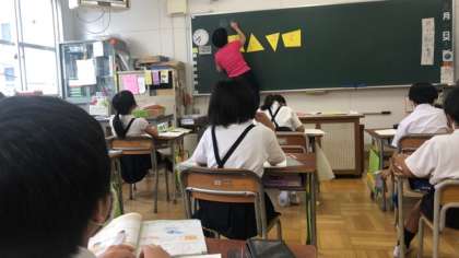 先生が示した形を仲間分けできるかな?という発問から「形は、囲んでいる直線の数によって仲間分けができる」ことに気づきました。