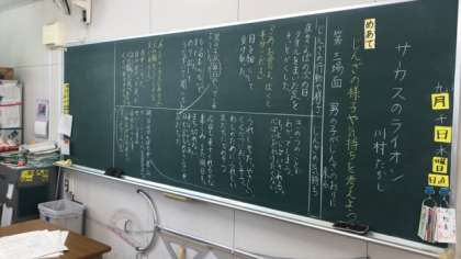 「サーカスのライオン」で第3場面に絞って、じんざの様子や気持ちをマトリクス図にまとめました。じんざの行動や様子とじんざの気持ちをリンクさせて、ノートにまとめていました。