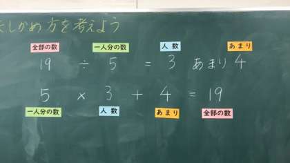 「あまりのあるわり算の答えの確かめ方を考えよう」という課題で、学習しました。検算ができるようになると答えの見直しができるようになります。