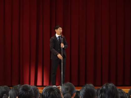校歌を作詞した人が、みなさんにどんな子どもになってほしいのか、どんな大人になってほしいのか。作詞した人のどんな願いが歌詞に込められているのか、考えてみましょう。」