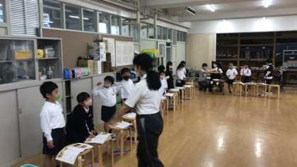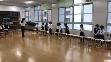 楽器の音を1回ずつ鳴らして、友達と楽器で呼びかけっこしながら音を繋ぎました。