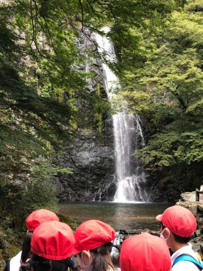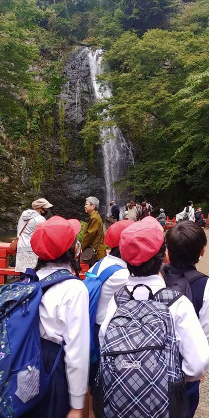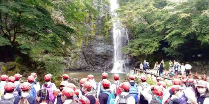 箕面の滝に到着しました。雨も上がり、良い景色です!