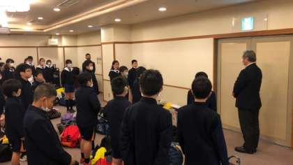 閉舎式では、代表の児童が美味しかった食事や部屋での様子を話しました。