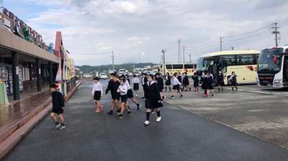 休憩場所の上野ドライブインに着きました。空気の入れ替えで、全員が降りて、トイレ休憩しています!