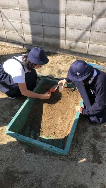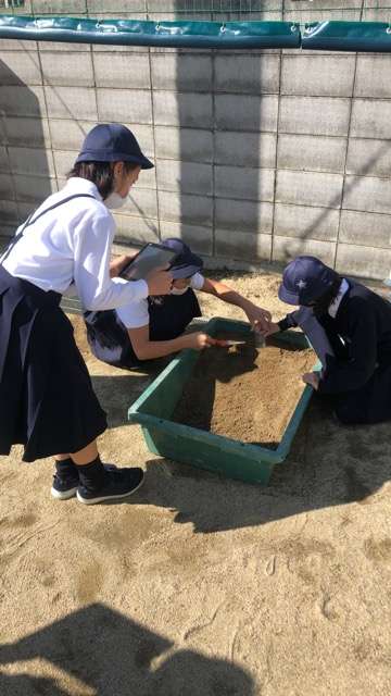 流れる水には、土を削ったり、削った土を押し流したり、積もらせたりする働きがあるということを実際に実験して確かめました。