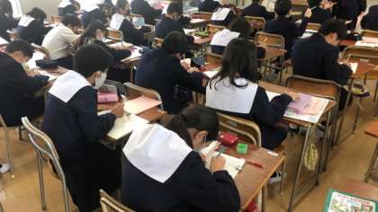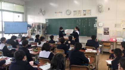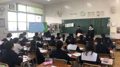 自分たちが住む西天満の町の未来について、グループに分かれてプレゼンをしました。「こんな街にしたい」と電子黒板や模造紙を使って資料を見せていました。