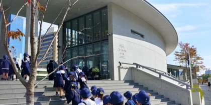 中之島付近を見学しました。今年、完成したこども本の森の前も通りました。