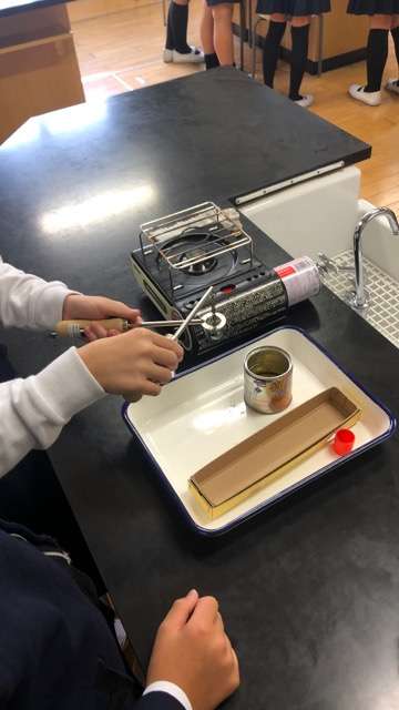 金属を温めると金属の体積は、どうなるか考えました。実験の結果をみて、児童は驚いていました!
