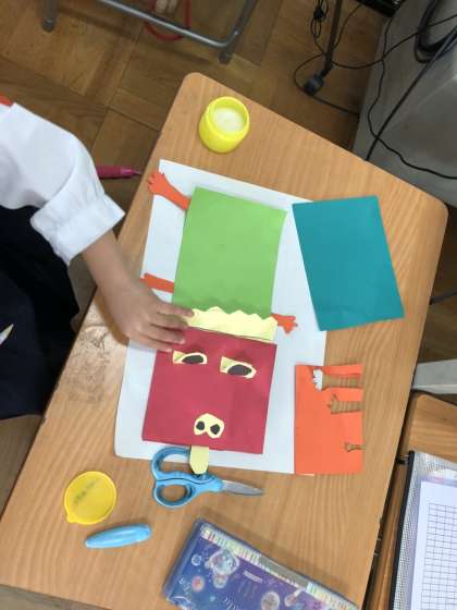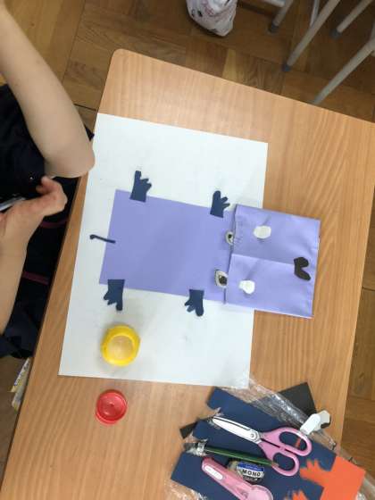 画用紙を使って、パクパク動かすことができるおもちゃを作っています!