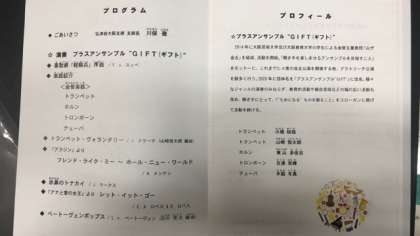 今日は、ブラスアンサンブル”GIFT”さんによる、金管五重奏を聴きました。