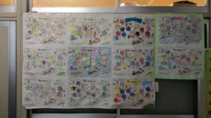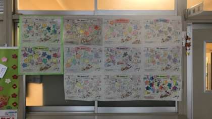 冬休みに書いてきた歯磨きカレンダーの一部が保健室前に掲示してあります。
