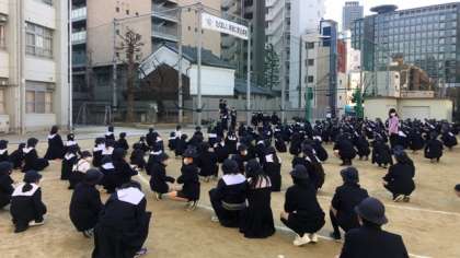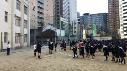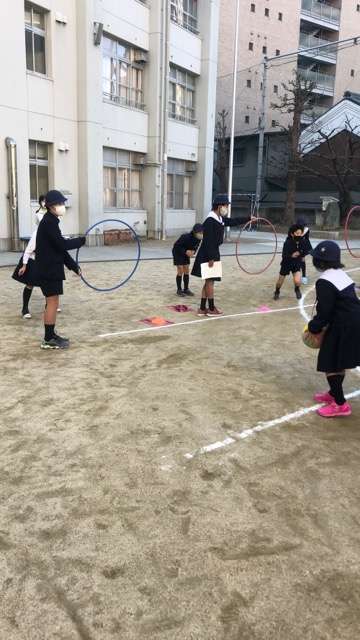 今日は、運動場でボール投げゲームをしました。気温が低いですが元気いっぱい活動することができました。