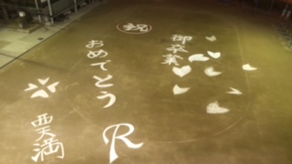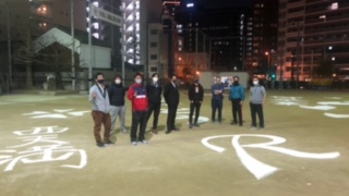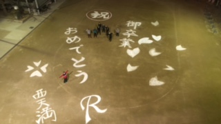 昨日、保護者の方々が運動場に卒業生へのお祝いのメッセージを書いてくださいました。