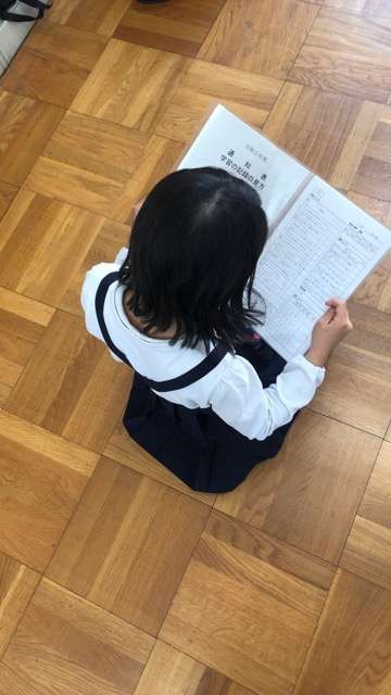 担任の先生から通知表が手渡されました。また、通知表を手渡す際、1年間頑張ったことを一人一人お話されました。