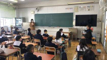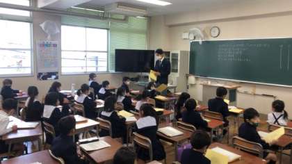 初めて同じクラスになったお友達がいるので、児童1人1人が自己紹介をしました。