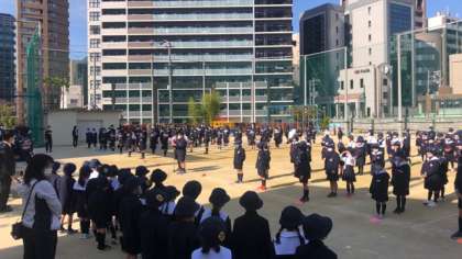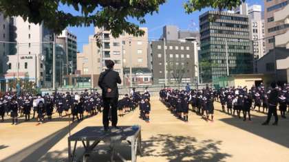 今日は、全学年が校庭に集合し、対面式を行いました。