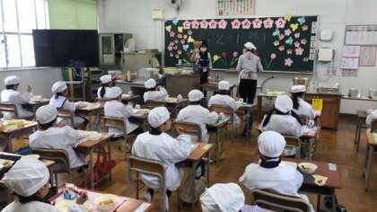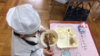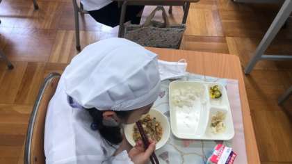 新形コロナウイルス感染拡大対策でおしゃべりをしないで給食をいただいています。