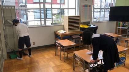 「私たちが1年生の時に6年生が掃除をしてくれたので、私たちもその伝統を引き継いでいます」と語ってくれました!