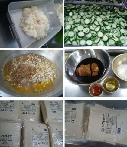 「マーボーどうふ きゅうりとコーンの甘酢あえ もやしとピーマンのごまいため ごはん 牛乳」