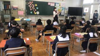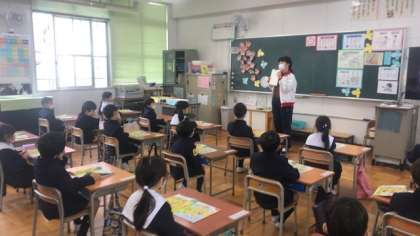 今日は、音楽の授業がありました。お花に関係ある歌を聞いたり、歌ったりしました。