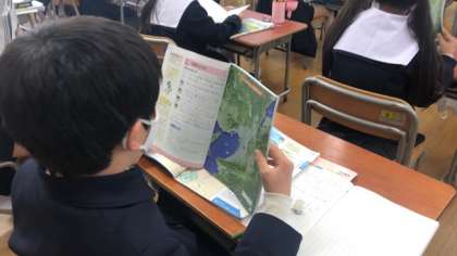 今日は、大阪府の位置と地形について学習しました。衛生写真を見ると、山に囲まれていることや大阪市には大きな川が流れていることに気付きました。