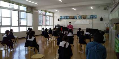 今日は、初めて音楽室で、授業がありました。