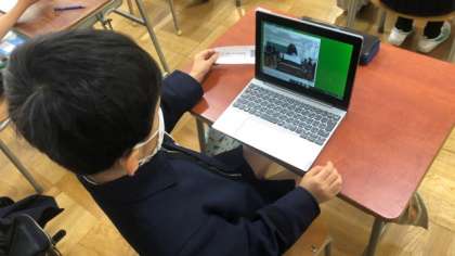 今日は、QRコードの読み込み方を学びました。1人1台タブレット端末には、QRコードを読み込むアプリがデスク上にあります。