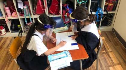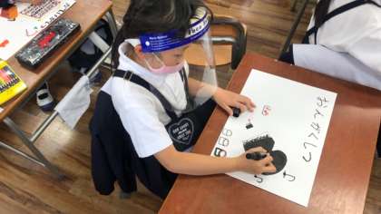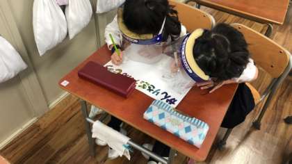 今日は、1年生に学校の施設を紹介するポスターを作成しました。