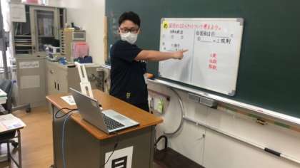 今日は、1人1台学習者用端末を使って、オンライン学習を行いました。