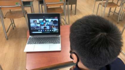 今日は、オンラインによる朝の会を実施しました。朝から学校に登校している児童も自宅にいる児童も顔を見て挨拶することができました。