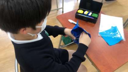 玉留め、玉結びが完璧にできるようになったので、小物作りをしています。ペンケースやストラップ、ペン立てなど、自分たちで設計して、裁縫しました。
