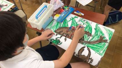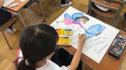 今日は、お気に入りの昆虫を描きました。細かいところまで、工夫して描けていました。