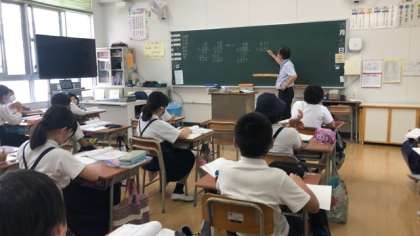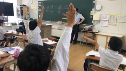 整数×整数の計算の仕方をもとに考えました。授業では、活発的でよく手があがり、自分の考えを伝えていました。