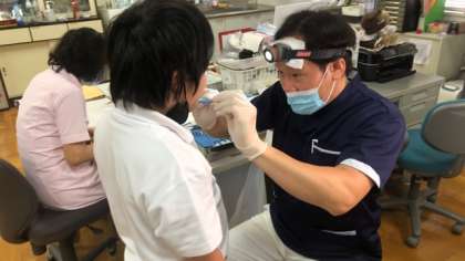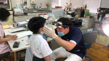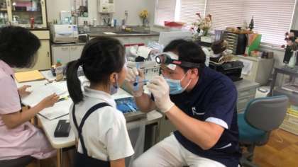 学校歯科校医の中谷先生に歯並びや歯垢や歯肉、虫歯の有無などを診てもらいました。