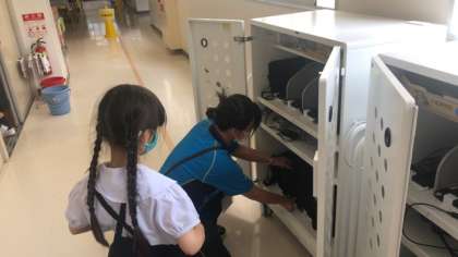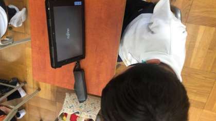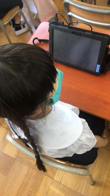 今日は、タブレット端末の繋ぎ方を教えてもらいました。初めて使うので、みんなワクワクしていました。