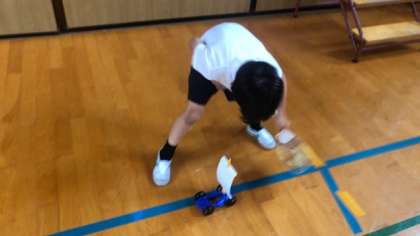 今日は、ウィンドウカーを使って風の勉強をしました。どうやったら、進むのか考えながら活動しました。