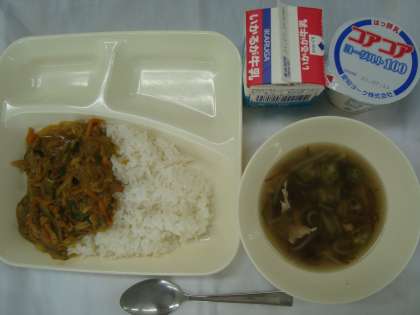 「和風カレー丼 もずくとオクラのとろり汁 ヨーグルト 牛乳」