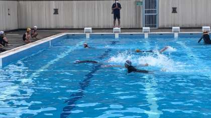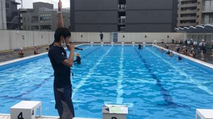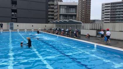 今日は、ロケット泳ぎ(けのび)の練習をしました。姿勢をまっすぐにして、泳げるようにがんばりました。