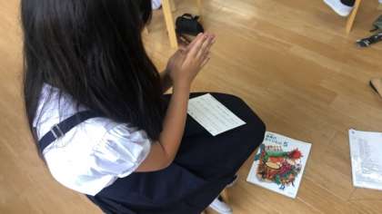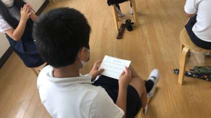 手を叩いてリズムをとって音楽を楽しみました。コロナ禍で音楽に制限がある中、音に親しむことができました。