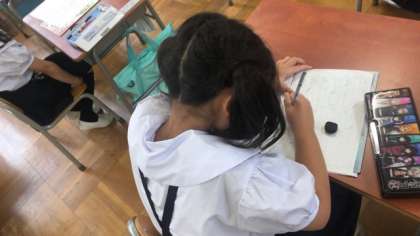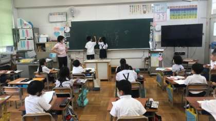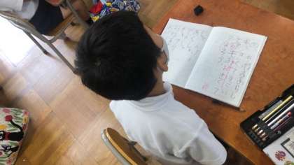 促音、拗音などを入れた言葉(単語)を先生が言い、それをノートに書いていました。