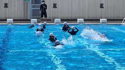今日の授業では、平泳ぎの手のかき方の練習をしました。これから高学年に向けて、平泳ぎができるように練習していきます。