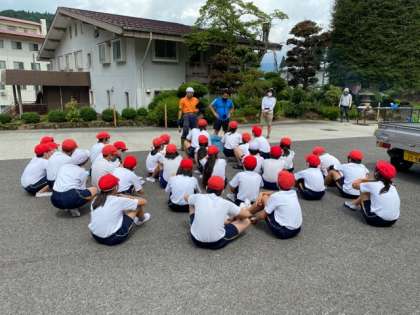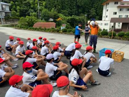 今は、宿のご主人に魚つかみのやり方を説明してもらってます!