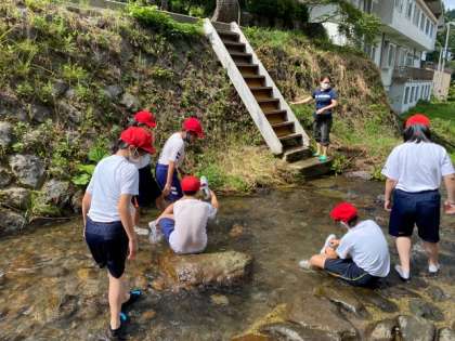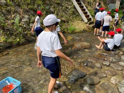 魚つかみが終わり、少し川遊びをして遊んでいます!
