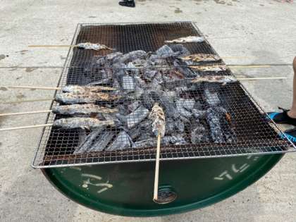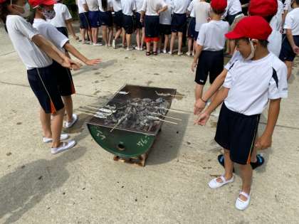 僕は、この大きい魚を捕まえたと教えてくれました!