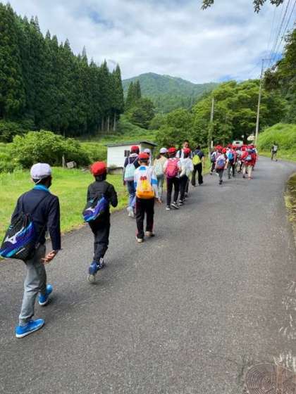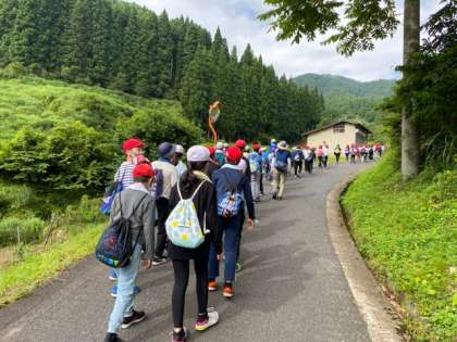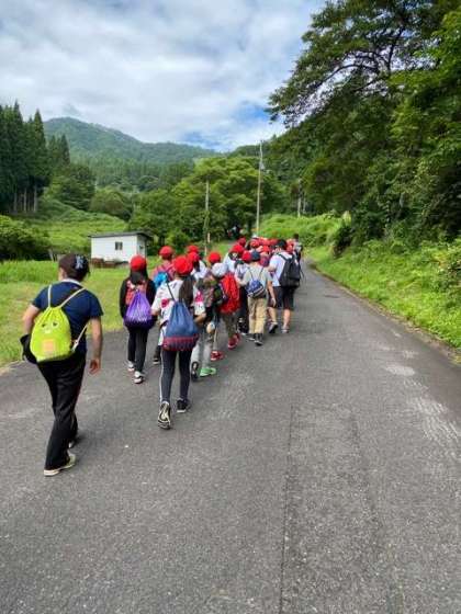 歩いて3分で、「あとどれだけ?」と聞く児童もいましたが、気温が高くないため気持ちよくハイキングできています。